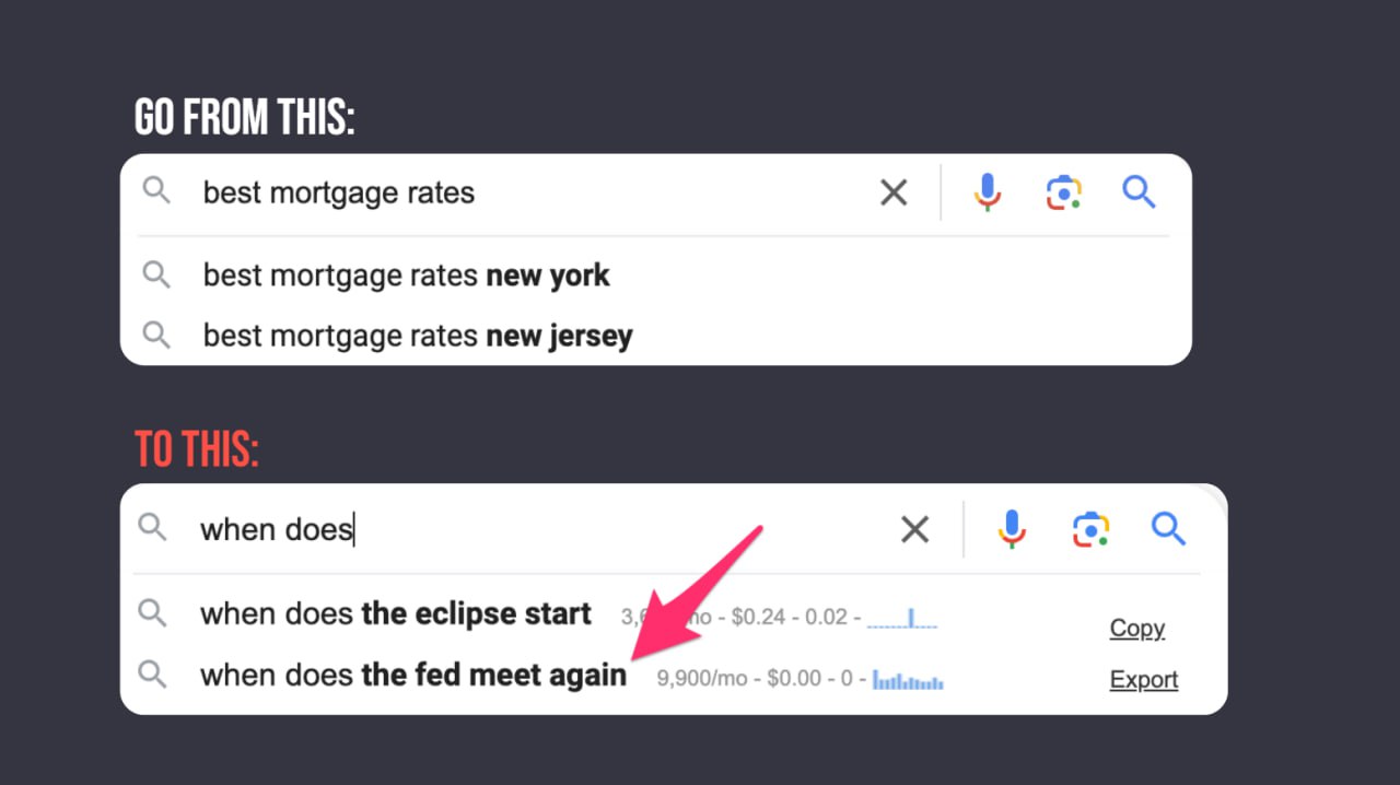 Например, в ипотечной индустрии стандартный запрос «best mortgage rates» может быть трансформирован. При добавлении вопросительного слова после основного запроса, например, «best mortgage rates when», система автодополнения Google генерирует более уточненные и часто неочевидные запросы, такие как «when to lock in a mortgage rate», «when to refinance a mortgage» или даже «when does the Fed meet again». Эти примеры демонстрируют переход от общих «лучших ставок» к конкретным вопросам, которые отражают реальные финансовые опасения и информационные потребности пользователей.